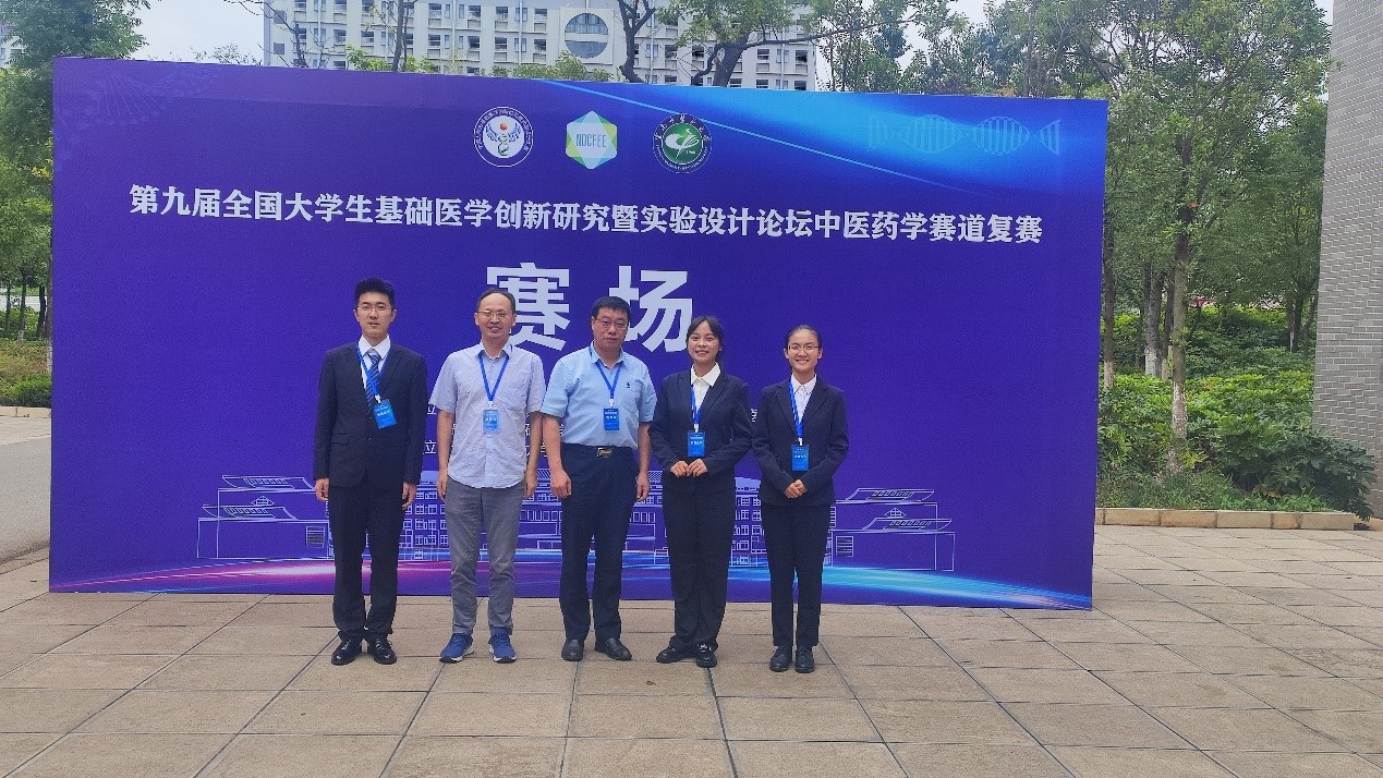 2023年7月29日,第九届全国大学生基础医学创新研究暨实验设计论坛中医药学赛道复赛在云南中医药大学成功举办。比赛由高等学校国家级实验教学示范中心联席会基础医学组、高等学校基础医学创新创业协同育人工作组主办,云南中医药大学承办。全国127所医药院校的237支队伍参赛,最终产生24名一等奖、47名二等奖、73名三等奖。我院共派出2支团队,本科生龙娜沙团队(团队成员为2019级中医学龙娜沙、黄晨睿、惠鲲鹏,2020级中医学王雪敏,2020级临床医学黄雯韬)的实验设计项目喜获一等奖,项目由文磊教授、孙孝忠副教授指导;本科生高露媛团队获优秀奖(团队成员为2019级中医学高露媛、余周歆,2021级中医学王煜薇,2022级中医学李仲雯),项目由杨宗保教授指导。