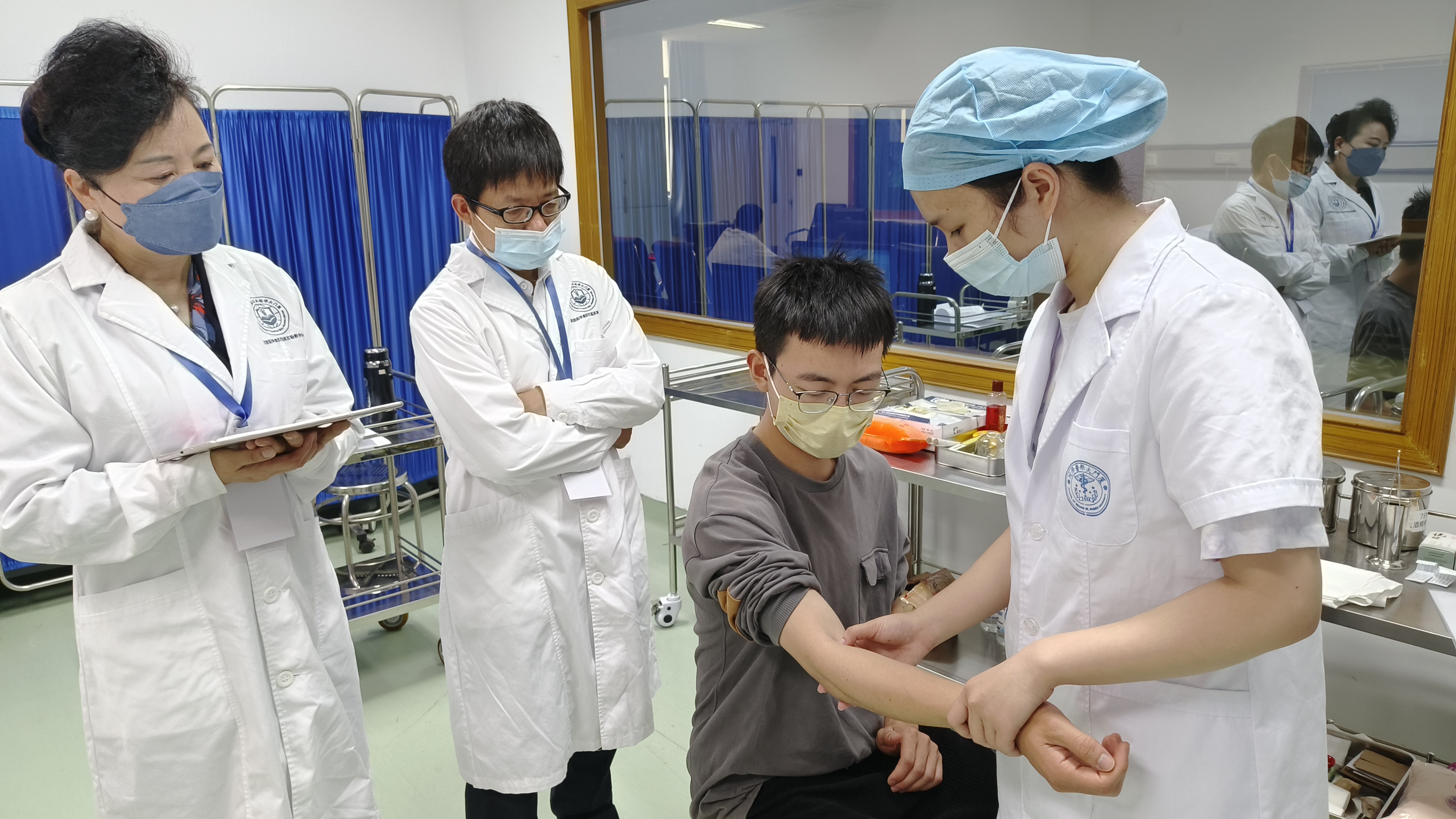 中医师岗位胜任力第二阶梯考核分为理论考试和技能考试两个部分,医学院中医系2019级中医学专业本科生参加本次考核。