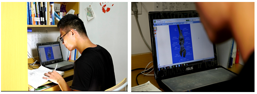 图 1虚拟人体解剖陈列室的部分标本数码图片  图 2学生在寝室学习虚拟人体解剖陈列室的内容